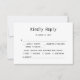 Vi introducerar våra stilrena RSVP-kort för bröllop! Dessa snygga och moderna kort är designade för att perfekt komplettera ditt moderna bröllopstema. Med sina rena linjer och minimalistiska design kommer de säkert att imponera på dina gäster och göra ett statement. Meddelandet "Vänligen svara" visas vackert, och inbjuder dina gäster att svara snabbt, medan den tidlösa elegansen hos en klassisk typsnitt lägger till en touch av sofistikation. Gör det enkelt för dina gäster att välja sina önskade måltidsalternativ med våra praktiska menyalternativ. Detta ger dig informationen för att skapa den perfekta menyn för din speciella dag som alla kommer att uppskatta. Våra RSVP-kort har designats med omsorg för att göra svarsprocessen enkel för dina gäster. Med gott om utrymme för deras namn, måltidsval och eventuella ytterligare anteckningar kommer de att finna det lätt och roligt att svara. Nu är det dags att skaffa dessa måste-ha RSVP-k