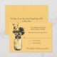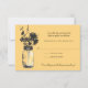 Perfekt för en landsbygdbröllop eller kanske bara för att man älskar Masonburkar! Gammal vintage Masonburk som hänger i en krok med vilda blommor i country-stil. En underbar gul bakgrundsfärg med svart teckning av en Masonburk fylld med vilda blommor i country-stil. Om du har några frågor om denna design eller vill ha en färgändring, vänligen maila mig paula@labellarue.com. Kolla även efter BRÖLLOPSKORT, MOTTAGNING och GÄSTPLACERING kort för att matcha! Detta 3,5x5 RSVP-kort är utformat som ett vykort. Lägg bara till din returadress på baksidan.