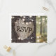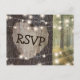 Rustika postkort för svar på bröllopsinbjudan med en romantisk skogsmiljö, glittrande slingljus, ett gammalt träd med ett snidat hjärta och detaljer om ditt svar.