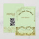 Överraska dina gäster med detta botaniska bröllopssvarskort, designat i en mjuk mintgrön nyans med eleganta guldfärgade accenter och blomstermålade utsmyckningar. Kortet innehåller en klassisk svarsdel och en praktisk QR-kod för digitala svar, vilket gör det perfekt för moderna par som omfamnar både tradition och teknik. Idealiskt för trädgårdsbröllop, vårfirande eller eko-chica evenemang, detta svars kort sammanför elegans och funktionalitet i en vacker design.