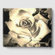 Design har en svart bakgrund med elegant med sepia ro som omger en vit rektangel som visar text. Namn av par visas i elegantens teckensnitt på framsidan. En gyllene kor som är sammanflätad med två bröllop ringar finns i hörnet av den övre högerna. Den fantastiska designen är mycket glad för öga. Baksida visningar en stor bild av ett vackert sepia ro mot en svart bakgrund.