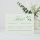Svarskort för bröllop med sagegrön färg med eleganta vertikala ränder och en delikat kinesiserad blomaccent. Utformat för att gästerna med glädje ska kunna acceptera eller avböja samtidigt som de väljer sin måltid, ger detta svarskort en raffinerad trädgårds charm till din koordinerade inbjudan. Perfekt för vår- och sommarbröllop med en romantisk engelsk cottagecore-estetik.