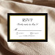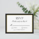 Svart och vitt med en touch av guld klassiskt bröllops-svarskort. Elegant block- och skrivstilstext inom en svart och nyans av guld kant. Svart baksida.