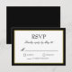 Svarskort för bröllop med svart guld kant OSA kort