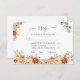 Svarskort för blommigt har vattenfärgblommor i nyanser av orange, rött, gult och persika, åtföljda av eukalyptus grönt löv.