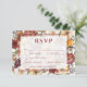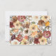 Den här eleganten har en enkel design med en bakgrund av grädde, gult, lera och marsala ro och blommor. Texten visas på en mjuk vit, genomskinlig bakgrund för att visa av den bakomliggande designen. Kortet är en del av Bröllop-kortssamlingen för Fall Watercolor Bouquets bröllop skapat av Farmhouse Press.