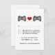 Den här Cute Gamer Bröllop-svarskortet med svarsknappar för ett par videospelsstyrenheter med röda knappar är en snabb och fullmatad chic. Ett hjärta i mitten förbinder de två styrenheterna. Den här smarta OSA kort är perfekt för spelparet. Enkel att anpassa, lägg bara till information om bröllop. Klicka på Anpassa om du vill söka efter fler anpassningsalternativ.