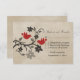 Söt och vismisk Blommigt Svarskort Lovebird Bröllop med en kaskad av blommor på en snabb vind och ett par rödvita fåglar av mörk med en vintage som ser texturerad digital konsbakgrund i beige. Detta vackra bröllop OSA-kort är perfekt för vår eller sommar-bröllop. Enkel att anpassa, lägg bara till information om bröllop. Klicka på Anpassa om du vill söka efter fler anpassningsalternativ.