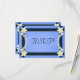 Rustic Blue Blommigt © Sunny Mars Designer - Anpassadets formella vintage av anpassningsbar rosty blue elegant bröllop OSA responskort med elegant mörk blått band gräns, moderna söt vita blommor på gammal papper bakgrund.