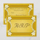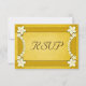 Rustic Guld Blommigt © Sunny Mars Designs. Anpassadets formella anpassningsbar vintage rostig elegant bröllop OSA-svarskort med gult ribbon gräns, moderna söt vita blommor på gammal papper bakgrund vid parkering.