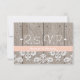Söt blek Peach HYDRANGEA BRÖLLOP SVARSKORT MED trästängsel, antika dammmönster snöre bakgrund och sydda tvättat korallribbor på baksidan som kan ANPASSAS FÖR ATT SÄGA VAD DU TYCKER PÅ BAKGRUNDEN. Denna OSA är perfekt för land, bondgårdar, trädgårdsodling party eller barnyard stil bröllop, party eller förlovning middag. Designad av Chrissy H. Studios, LLC. Alla höger reserverade.