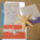 Söt stjärnfisksvarskort i korall och naturlig burlap färg för att matcha våra bröllopsinbjudningar "Beach Amore Starfish".