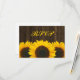 Ett svarskort för rustiska solrosor bröllop OSA. Med solblommor av gult på en bakgrund av brunt lingträ.