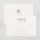 Minimalistiskt sandbeige strandtema, svarskort för bröllop med menyval. Vattenfärgspalm accent på baksidan med trendig minimalistisk typografimall.