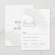 Kortet för svar på elegant Tropical Handflatan OSA Response Enclosure är perfekt för din enkla sommar-bröllop. Den minsta löv-utformningen skapar en mjuk effekt med exakta detaljer. Malltexten fält är fördesignad för att du enkelt ska kunna anpassa den. Kortets baksida är redot för namn med det andra handflatan löv. Ta en titt på de andra punkterna i den här samlingen för att sammanföra hela temat för bröllop! Ert bröllop kommer att bli verklighet med denna enkla, tankeväckande utformning.