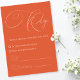 Det här vackert designade svars kortet är det perfekta komplementet till din Verona Sunset bröllopsinbjudan. Med en varm, levande terrakotta bakgrund och elegant vit skrivstil, låter detta kort dina gäster svara enkelt samtidigt som det bibehåller den sammanhängande, romantiska estetiken på ditt bröllop. Det är en viktig del av din brevpappersuppsättning, som säkerställer en smidig och organiserad planeringsprocess.