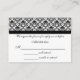Elegant Skugga svarskort för vitt och svart. Texten lyder: "Vi ber om ett svar på eller före". Ytterligare anpassade för svarsdatum och kommer/kommer inte att delta i fält. Idealiskt kort som ska ingå i matchande bröllopsinbjudan. Köp i bulk och spara!