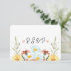Svarskort från sveda och charming av vilda blommor med en blommigt med ett vattenfärgsutseende av gult och vita daisy samt blommor och gröntar för söt av rosa. Den vackra målade perfekten för ett Kärlek är i Bloom Temat bröllop, dusch eller årsdag eller förlovningsfest. Stationär perfekt för inomhus- eller utomhusbruk i vår eller sommartid i bröllop, förlovning eller årsdag i party eller dusch. Designad av Chrissy H. Studios, LLC. Alla höger reserverade.