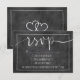 Svarskort från svart och vitt krita, typografi av osa bröllop. En del av en vacker matchande temainsamling. Ge kan dina gäster svara om de kommer till elegant bröllop eller inte. Sidoutskrift av dubbla i klass lämplig för sommar, vår, vinter eller fall. Den här mjuka utformningen av vintagen går hand i hand med liknande inbjudningar till bröllopsmottagningar och andra söt kontorsartiklar. Anpassadets ordalydelse och papper kvalitet. Mallen för handskrivet penselskript med typografi. Söt DIY stil-grafik. Struktur med skarp vit text är täckt av den kritaktiga svarta bakgrunden. Trendiget avslappnad handskriftsritning för avslappnade och romantiska giftermål. På baksidan finns också ett fint hjärta i dubblan gräns och hand plockade invändigt med varandra. R.S.V.P betyder på fransk: Répondez s'il vous plaît. Visa vår butik för mer inspirerande idéer och layouter.