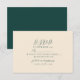 Enkelt men elegant, detta minimalistiska svarskort har en elegant grön skrift på en ren elfenbensvit bakgrund. Med utrymme för att ange deltagande och måltidsval kompletterar det perfekt den Eleganta Smaragdgröna Bröllopssviten.
