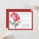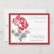 Detta röda, vita och taupegrå blomsterkort för RSVP matchar bröllopsinbjudan och andra föremål som visas nedan. Texten och papperet är alla anpassningsbara. Om du behöver andra matchande föremål, vänligen maila din förfrågan till niteowlstudio@gmail.com. Matchande föremål visas nedan.