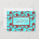 Detta röda och akvablåa svarskort matchar bröllopsinbjudan som visas nedan. Texten på baksidan och pappret är helt anpassningsbara. Om du behöver några andra matchande föremål, vänligen maila din förfrågan till niteowlstudio@gmail.com.