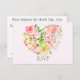 Designen har en förformulerad baksida. Rosa rosor, grönska och fjärilar på ljusrosa bakgrund. Färgerna är inställda för att matcha visningsdesignen men kan anpassas efter köparens smak. Redigera eller anpassa någon av formuleringarna eller placeringarna samt bakgrunds- och textfärgerna för att göra dessa vackra svarskort unika för dig!