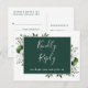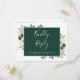 Ett elegant smaragdgrönt blomster-svarskort i akvarell med chic typografi. Baksidan visar dina detaljer och en rolig gäst-sångförfrågan. Designad av Thisisnotme©