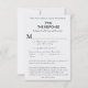 Ett unikt och kreativ OSA kort för bröllop i bok älskare. Svarskortet stil på bok-sidan innehåller alla nödvändiga detaljer i prosformat. Anpassa rubriken bok. kapitelrubrik och underrubrik, och naturligtvis författaren namn-ditt namn. Inkludera alla typiska OSA-komponenter med litterärt lukt: gäst namn, antal närvarande, måltider. På baksidan finns en QR-kod och en bröllop-webbplats tillsammans med en bok-offert eller en litterär sång-begäran från dina gäster som är uppbyggd av snyggtens blomningar. Det här är ett unikt kreativ för roligten för att berätta om din bröllopsdag i ett nytt format. Mjuk vit inbjudan med svart text. Färg kan anpassas i Design Verktyg. All text kan redigeras.