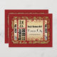 Röda och Guld Vintage Damask Playbill Movie Biljett Stil Roligt och Whimsical Wedding Investigations med antika pekdon och erkänna två eller byte för att släppa in en eller hur många du vill ha! Skapa en sorts bröllopsinbjudan till din designer!