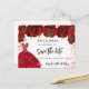 Ett giftigt och trendig Spara datumkortet för en svensk 16, 16:e födelsedagsfest. En svart bakgrund dekorerade svart ro, faux guld glitter och en guldklänning. Anpassa och lägg till datum och namn/ålder. Texten: Spara datumet skrivs med ett stort trendig-handskript i stil.