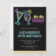 Svart 49-årsinbjudan Cocktail Neon Glow Inbjudningar