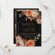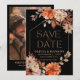 Meddela din kommande bröllop med elegans och enkelhet med hjälp av detta akvarellblomma höst Foto Svart Spara datum-kort. Denna sofistikerade design har en snygg svart bakgrund i kombination med ett modernt script-teckensnitt och visar ett älskat foto av paret. Perfekt för en modern och stilren tillkännagivande, det ger ett chic och minnesvärt sätt att låta dina gäster veta om din speciella dag.