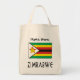 Bag visar Flagga Zimbabwe, eller Zimbabwe Flagga, med ord ZIMBABWE, under i svart. Ovanför flagga är en ställe för en namn: din, anpassa din väska eller anpassa den för en gåva. Underbar väska för shopping och/eller resor.