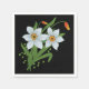 Vackra bukett av vår blommor, tulpaner av gult och vita daffodils mot svart bakgrund.