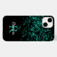 Svart bakgrund med teal glitter stardust med monogram och namn i ett skriptteckensnitt som du kan anpassa.