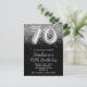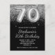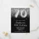 Skapa ditt eget 70-årsvykort med digitalkonst för faux foil-ballong. Skicka ett meddelande till skaparen om du behöver ett inbjudan för en annan skapat ålder. Den gigantiska glam-bakgrunden har dekorativ faux sparkly silver glitter-grafik över en solid svart färg. Texteffekterna för lyx-gnistra, glitter och puffy-folie skapas med konstnärligt inslag som skrivs ut som ett foto. Du kan anpassa den visuella kalligrafin och det moderna teckensnittet stilar och färg.
