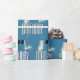 Vit Grattis på födelsedagen-text på blå bakgrund med svarta ballonger, konfekt, gnistor och ljus. Bakgrunden till färg kan ändras.