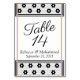 Denna design är modern och elegant. Den innehåller en vintage svart-vit kakeldesign som påminner om romantiska franska bistroer. Dessa nummerskyltar kan anpassas med dina egna detaljer.