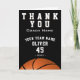 Svarta bollar Sport Tacksamhetstränare Kort. Basketboll tacksamhetstränare kort med tränarens namn, lagets namn, år, spelarens namn och nummer. Fantastiskt tackkort till basketlagets tränare!