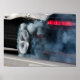 Svart bil som gör brännskador, snurrar hjul som orsakar däck rök. Fotografi.