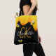 En snyggt svart och lycklig leende humla. Dekorerad med söt, gyllene honungsdroppar. Anpassa och lägg till ditt namn och monogram initialer, guldfärgat och vitt brev. Namn är skrivet med ett handskript i stil.