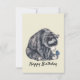 Svart björn från sitta med fjärilbild med Grattis på födelsedagen, på gräddbakgrunden