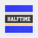 Den här sportetiska, atletiska designen har fet HALFTIME-text inuti ett markerat svart mittfält rand med vit och gult tävla ränder mot levande blå yttre ränder. Texten kan vara personlig.