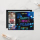 Moderna Svarta & Blå Midnatt Glöd Nytt År Familjefoto Julkort: