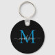 Svart blå monogram Namn-Elegant, modernt skript Nyckelring