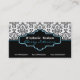 Svart turkos vitt affärskort av fuktig insida, med ett svart och vitt dammmönster. Grund är av fast svart färg. En svart och en blå rand skiljer de två delarna åt. Ditt företag/namn är skrivet på en svart elegant med vit och turkotisk kontur.