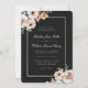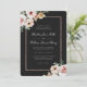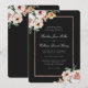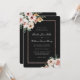 Svart blombröllopsinbjudan. Denna romantiska och stämningsfulla mörka bröllopsinbjudan har vackra handmålade akvarell rosafärgade blommor arrangerade runt en stilren roséguld ram. Detta är en del av den Eleganta mörka bröllopssamlingen.