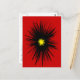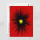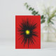 Det här vykortet har en dramatisk abstrakt utformning av en svart blomma med en gyllene gult på scarlets röda bakgrund.