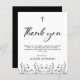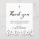 Ett elegant minneskort för begravning med svarta små blommoteckningar och elegant svart kors ovanför all text. Du kan anpassa enkelt med knappen "PERSONALISERA" med ditt eget tackmeddelande och naturligtvis all annan data. Designad av szdesign.